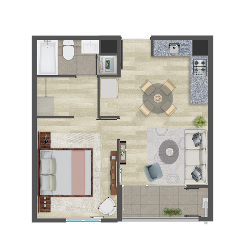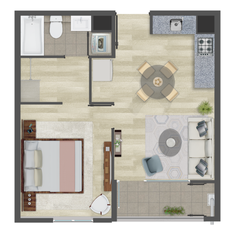 1 Dorm. 1 baño