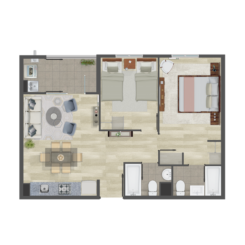 2 Dorm. 2 baños